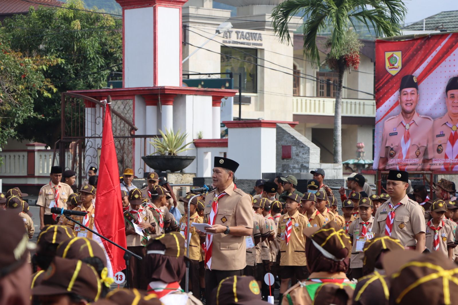 Bupati Wonogiri dalam amanatnya juga menekankan peran penting Pramuka dalam membangun generasi penerus bangsa yang berintegritas. Dengan suara tegas namun penuh kehangatan, beliau mengajak seluruh peserta untuk terus belajar, berlatih, dan berkarya.