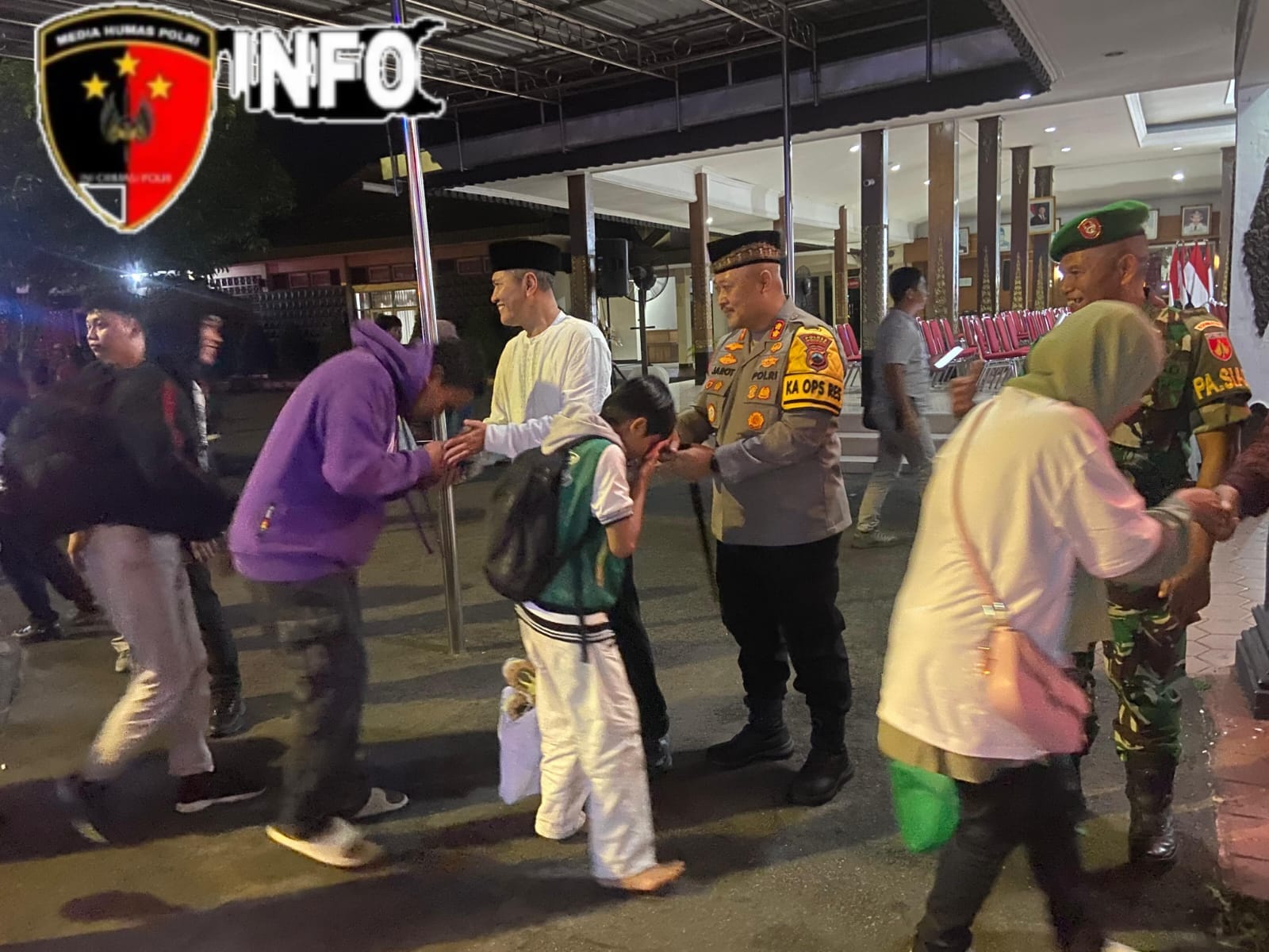 Kapolres Wonogiri, AKBP Jarot Sungkowo, S.H., S.I.K., bersama jajaran Forkopimda Kabupaten Wonogiri, terima kedatangan rombongan mudik gratis di pendopo rumah dinas Bupati Wonogiri, Rabu malam (26/3/2025).