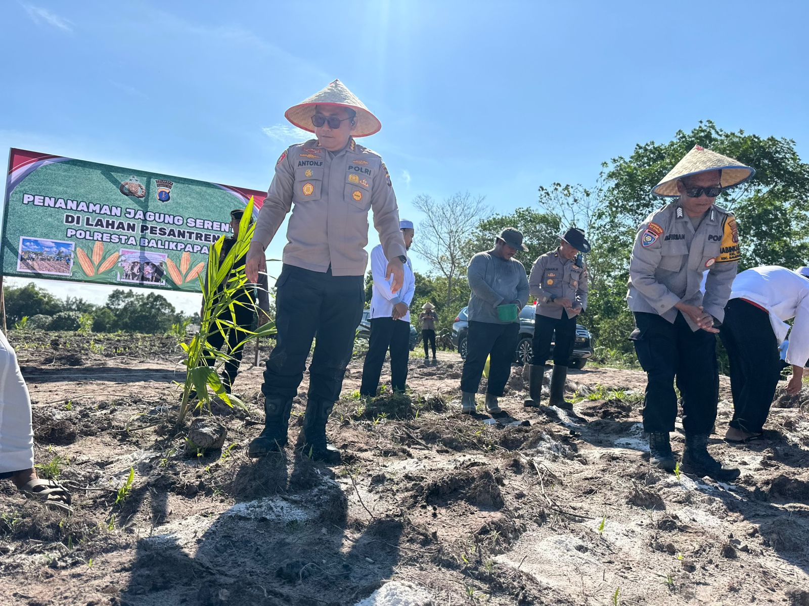 Dalam rangka mendukung program ketahanan pangan nasional, Polresta Balikpapan menggelar kegiatan penanaman jagung serentak bersama para ulama, santri, dan pengurus pondok pesantren di kawasan Gunung Tembak, Balikpapan Timur, Rabu (6/8/2025).