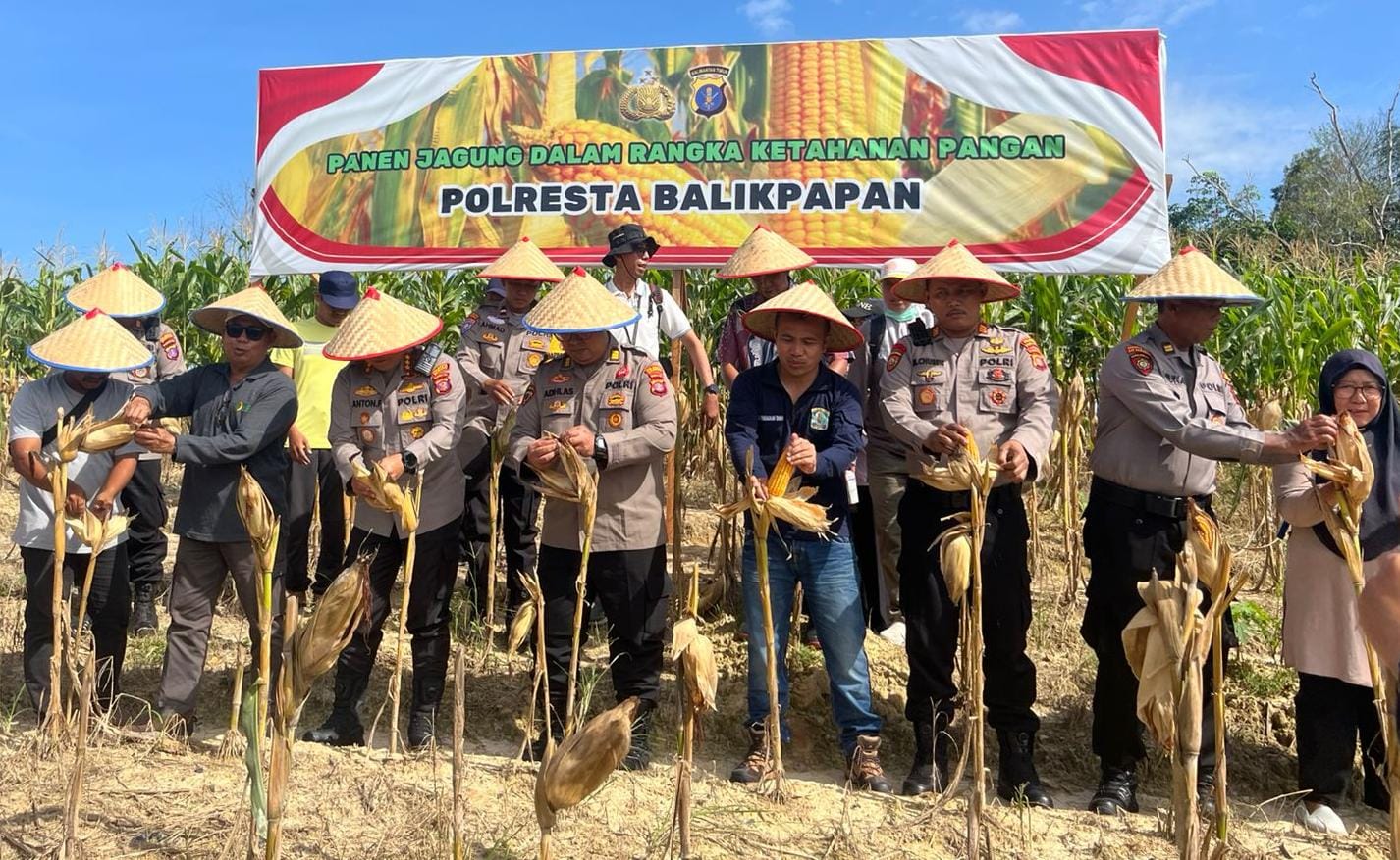 Dalam rangka mendukung program ketahanan pangan nasional yang dicanangkan Presiden RI menuju swasembada pangan, Polresta Balikpapan bersama Dinas Pertanian Kota menggelar panen jagung tahap kedua di Kelurahan Lamaru, Kecamatan Balikpapan Timur, Jumat (16/5/2025).