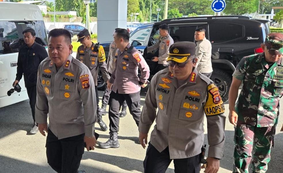Kapolresta Balikpapan bersama jajaran Forum Koordinasi Pimpinan Daerah (Forkopimda) menyambut kedatangan Menteri Perdagangan RI Ir. H. Budi Santoso dan Menteri Perlindungan Pekerja Migran RI H. Abdul Kadir Karding, S.Pi., M.Si., di Bandara Internasional Sultan Aji Muhammad Sulaiman (SAMS) Sepinggan, Balikpapan, Jumat (1/8/2025).