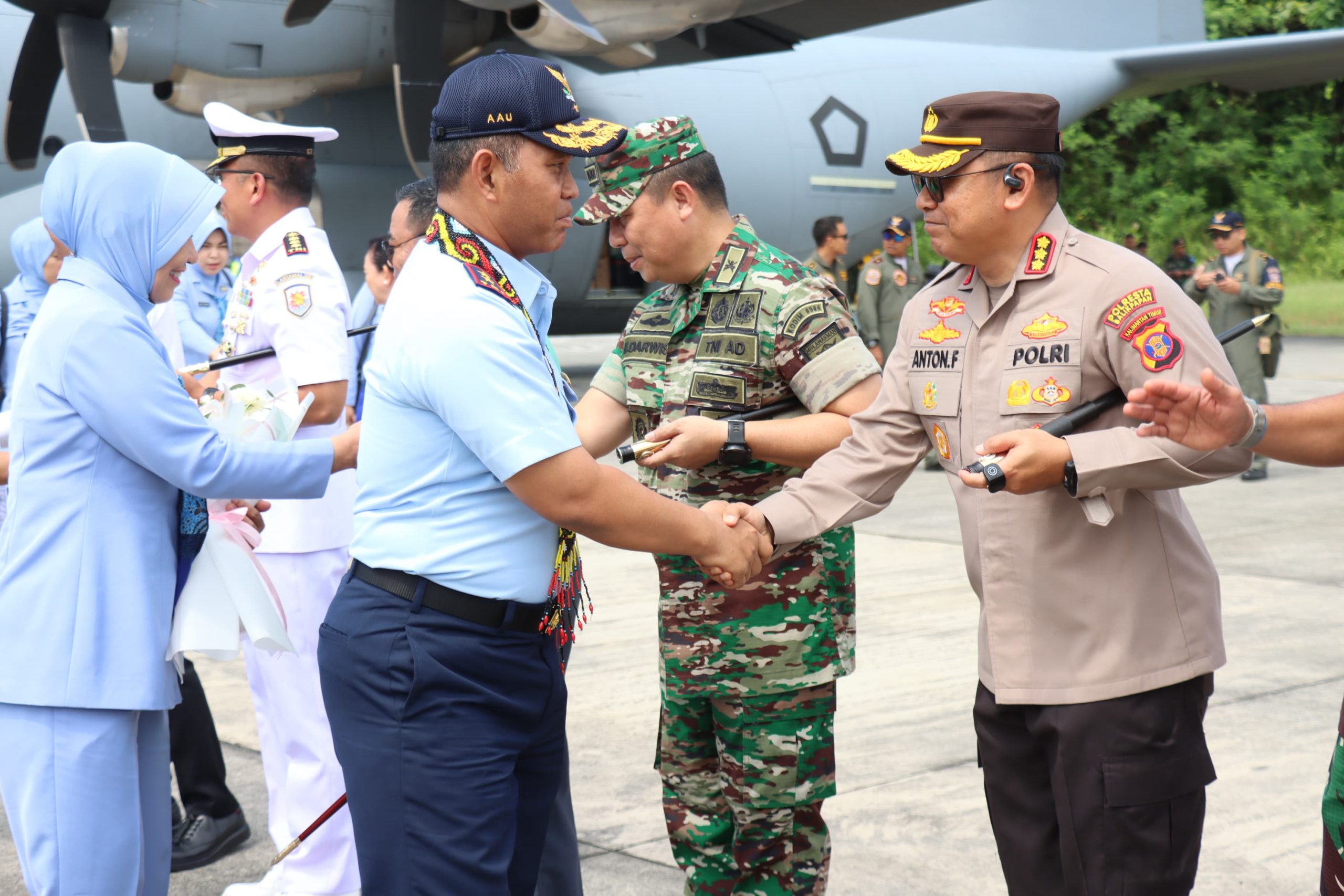 Penyambutan Rombongan Taruna AAU dalam rangka Pelatihan Cakra Wahana Paksa Taruna AAU Tingkat III Tahun 2025 di wilayah Kalimantan Timur berlangsung di Base Ops Lanud Dhomber Balikpapan. Rombongan Taruna AAU tiba menggunakan pesawat udara TNI AU yang mendarat dengan lancar di landasan Base Ops Lanud Dhomber.( Jumat 25 April 2025 ).