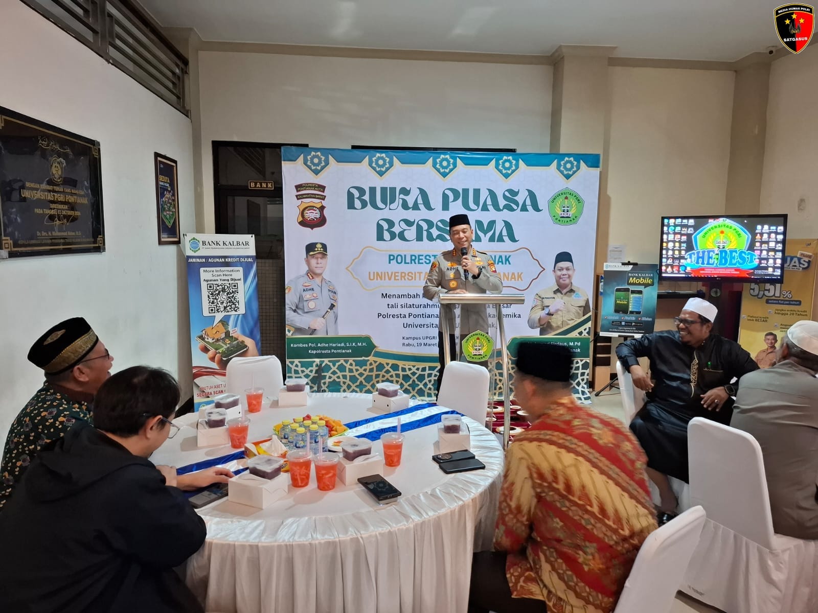 Kapolresta Pontianak, Kombes Pol Adhe Hariadi, S.I.K., M.H., menghadiri acara buka puasa bersama jajaran Rektorat Universitas PGRI Pontianak yang digelar di lobi utama Universitas PGRI Pontianak, pada Rabu (20/03/2025).