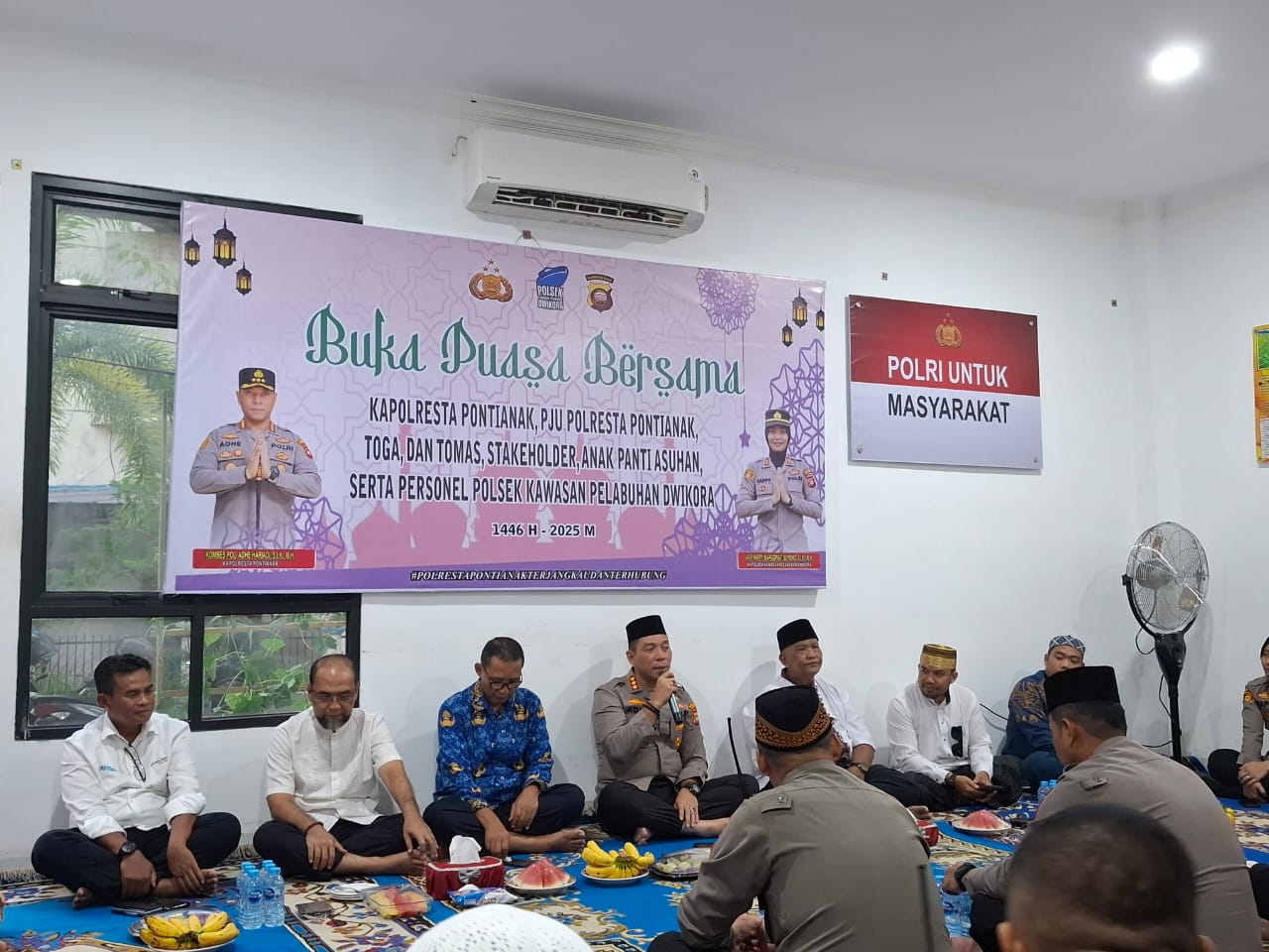 Kapolresta Pontianak Kombes Pol Adhe Hariadi, S.I.K., M.H. menggelar acara buka puasa bersama dengan PT Pelindo di Polsek Dwikora Pontianak pada Senin,(17/03/2025).