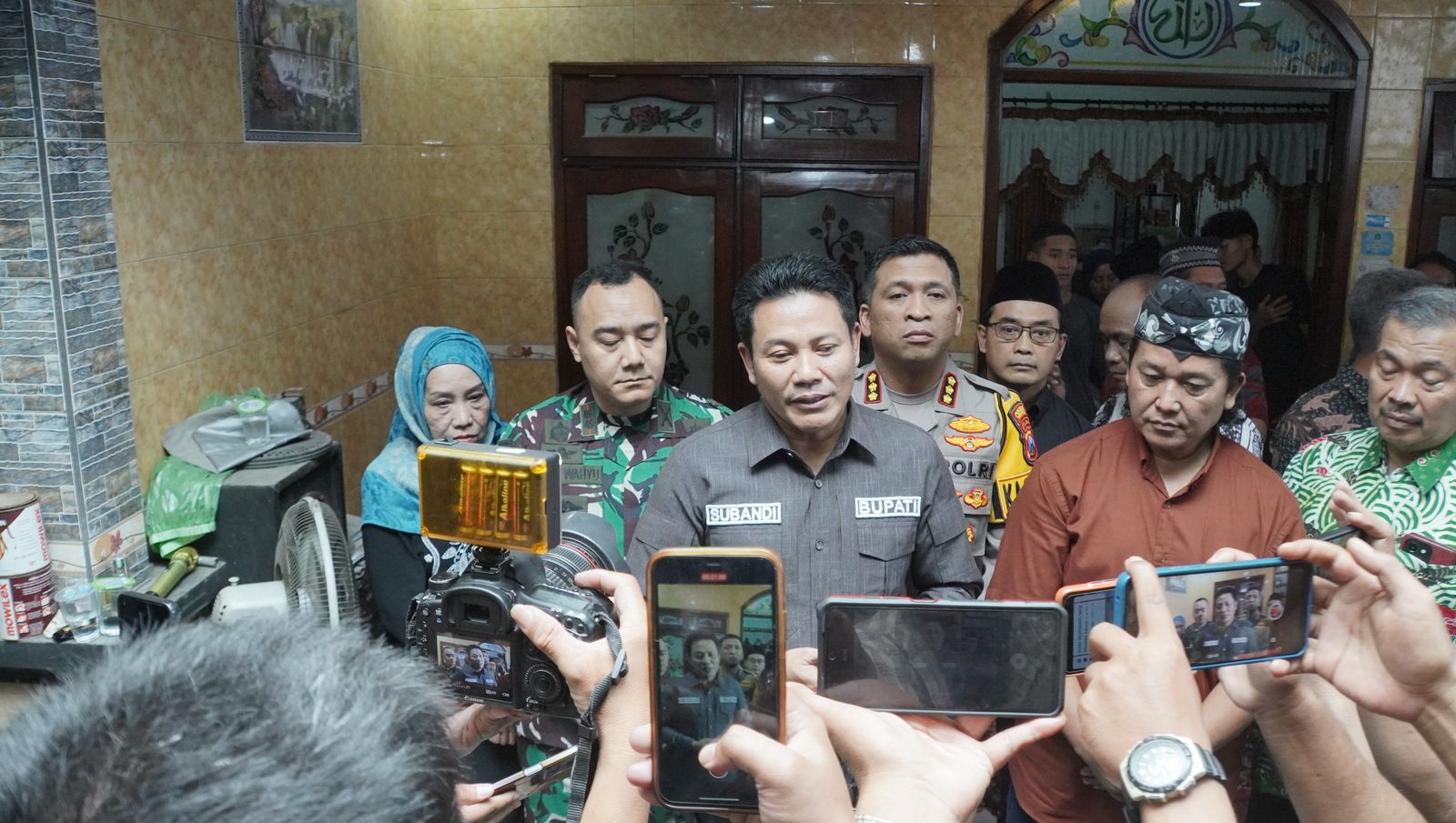 Kapolresta Sidoarjo Komisaris Besar Polisi Christian Tobing, Dandim 0816 Sidoarjo Letkol. Inf. Dedy Wahyu Widodo turut mendampingi Bupati Sidoarjo Subandi takziah ke rumah duka korban longsor jalur Pacet-Cangar di Desa Klopo sepuluh, Kecamatan Sukodono, Kabupaten Sidoarjo, pada Sabtu (5/4/2025).