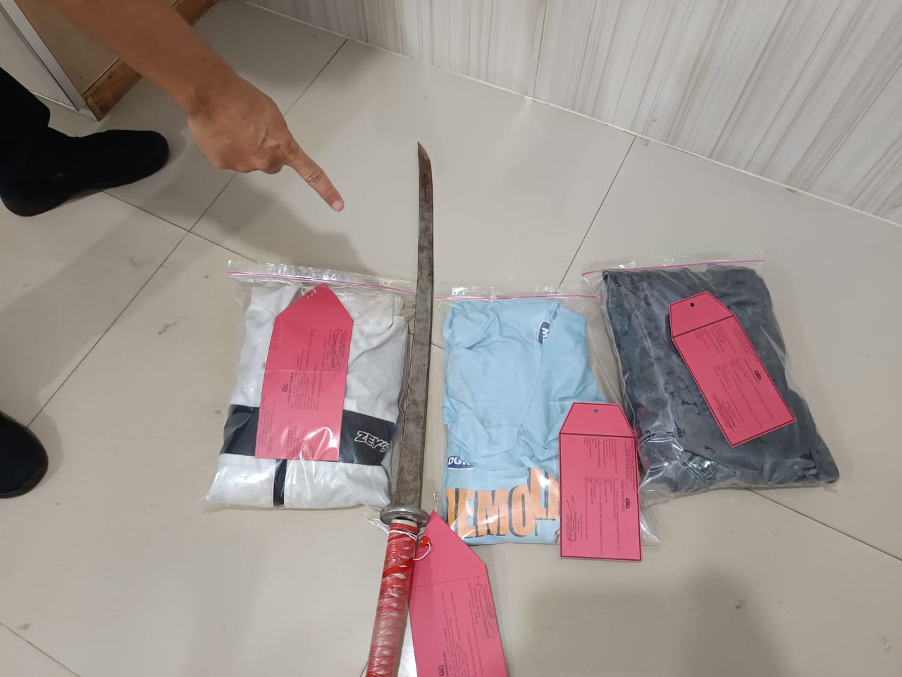 Dari kejadian tersebut, polisi berhasil mengamankan Satu bilah senjata Tajam jenis Samurai, Satu buah jaket berwarna putih hitam, Satu unit sepeda motor merek Honda Vario, Satu set Baju dan Celana Korban.