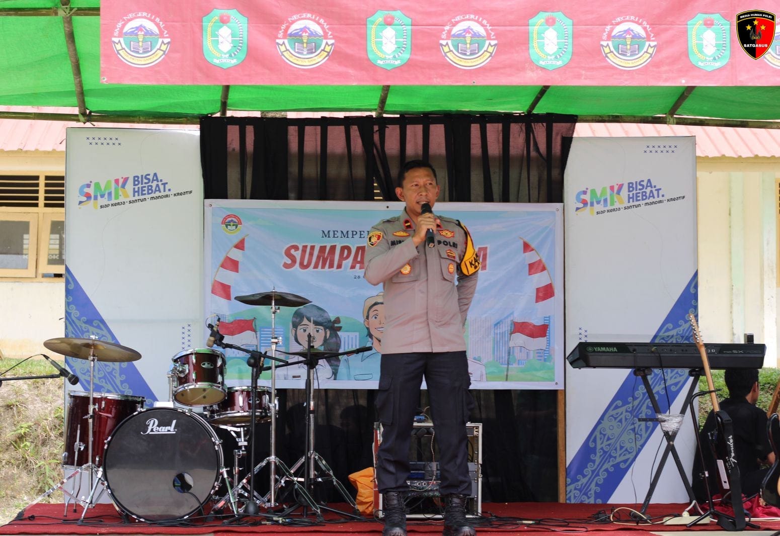 Dalam semangat memperingati Hari Sumpah Pemuda ke-97, Kapolsek Batang Tarang IPDA Miskun, S.H., M.H. hadir sebagai narasumber di SMKN 01 Balai, Kabupaten Sanggau, pada Rabu (29/10/2025). Kegiatan yang berlangsung di lapangan sekolah tersebut menjadi ajang pembekalan bagi para siswa untuk menumbuhkan semangat disiplin, kepedulian sosial, dan kesadaran hukum sejak dini.