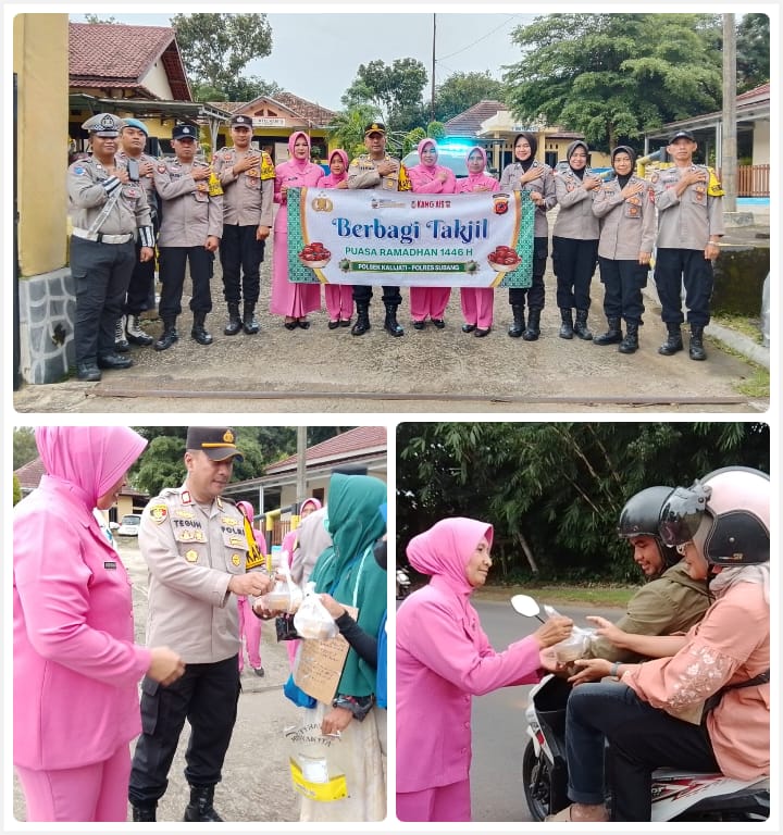Kapolsek Kalijati bersama Anggota dan Ketua Bhayangkari Ranting Kalijati, melaksanakan kegiatan sosial dengan membagikan takjil gratis kepada pengguna jalan serta masyarakat di sekitar Mako Polsek Kalijati