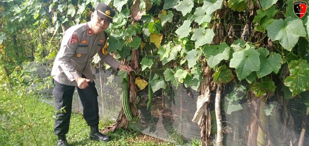 Kapolsek Jelai Hulu, IPTU Jumadi Hutabarat, melakukan pengecekan terhadap program perkarangan pangan bergizi di wilayah Kecamatan Jelai Hulu, Kabupaten Ketapang, pada Senin (07/04). Kegiatan ini merupakan bagian dari upaya untuk mendukung ketahanan pangan masyarakat serta meningkatkan kesadaran akan pentingnya konsumsi pangan bergizi bagi keluarga.