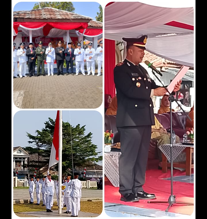 Kapolsek Kalijati beserta anggota hadir dalam upacara detik-detik proklamasi yang diselenggarakan di Alun-alun Kecamatan Kalijati. Minggu(17/8/2025) pagi.