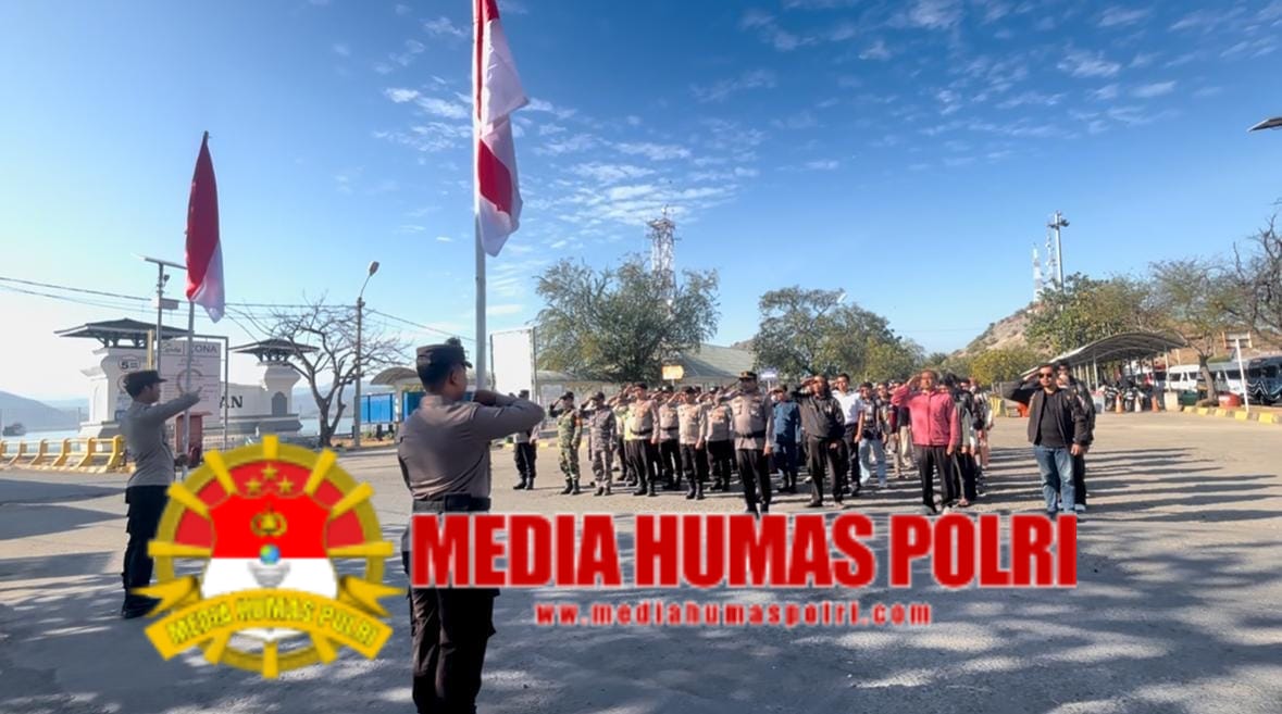 Dalam rangka memperingati Hari Ulang Tahun ke-80 Proklamasi Kemerdekaan Republik Indonesia, Kapolsek Kawasan Pelabuhan Laut Tano IPDA Rino Ansori, SH bersama Anggota menggelar upacara penghormatan Detik-Detik Proklamasi.
