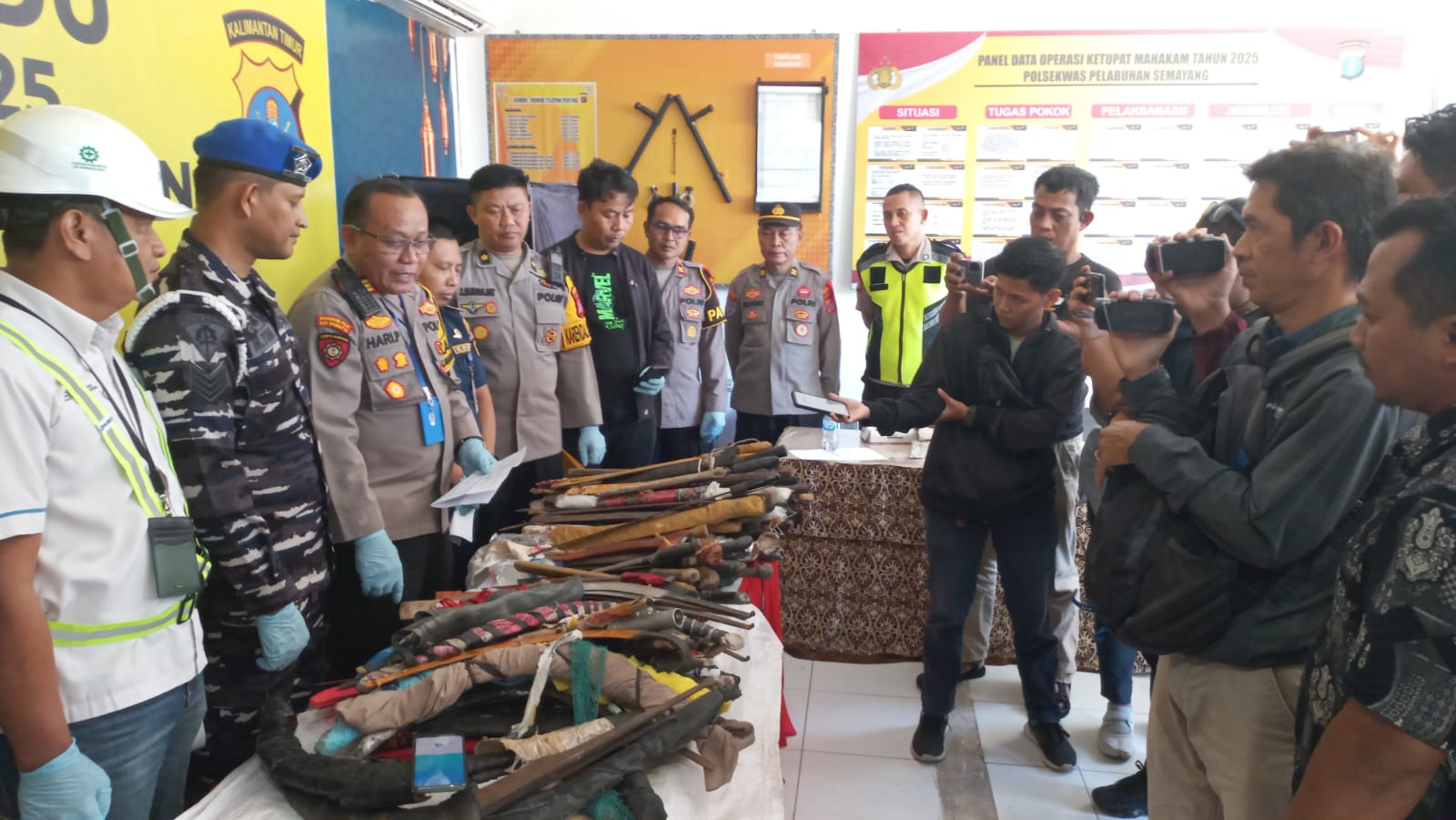 Kapolsek Hari Purnomo menyampaikan selama Operasi Ketupat Mahakam 2025 yang di gelar selama 14 Hari sejak Tanggal 26 maret 2025 hingga 06 april 2025 , telah berhasil mengamankan barang Milik para penumpang Kapal berupa Senjata Tajam berupa ; Parang , clurit , Golok dan sebagainya Sejumalah 186 bh . Barang jenis senjata tajam tersebut di dapat saat para penumpang kapal melalui pemeriksaan Exstrai di pintu keberangkatan Kapal laut serta pemeriksaan secara Manual oleh Petugas gabungan . ” Tambahnya AKP Hari Purnomo’.