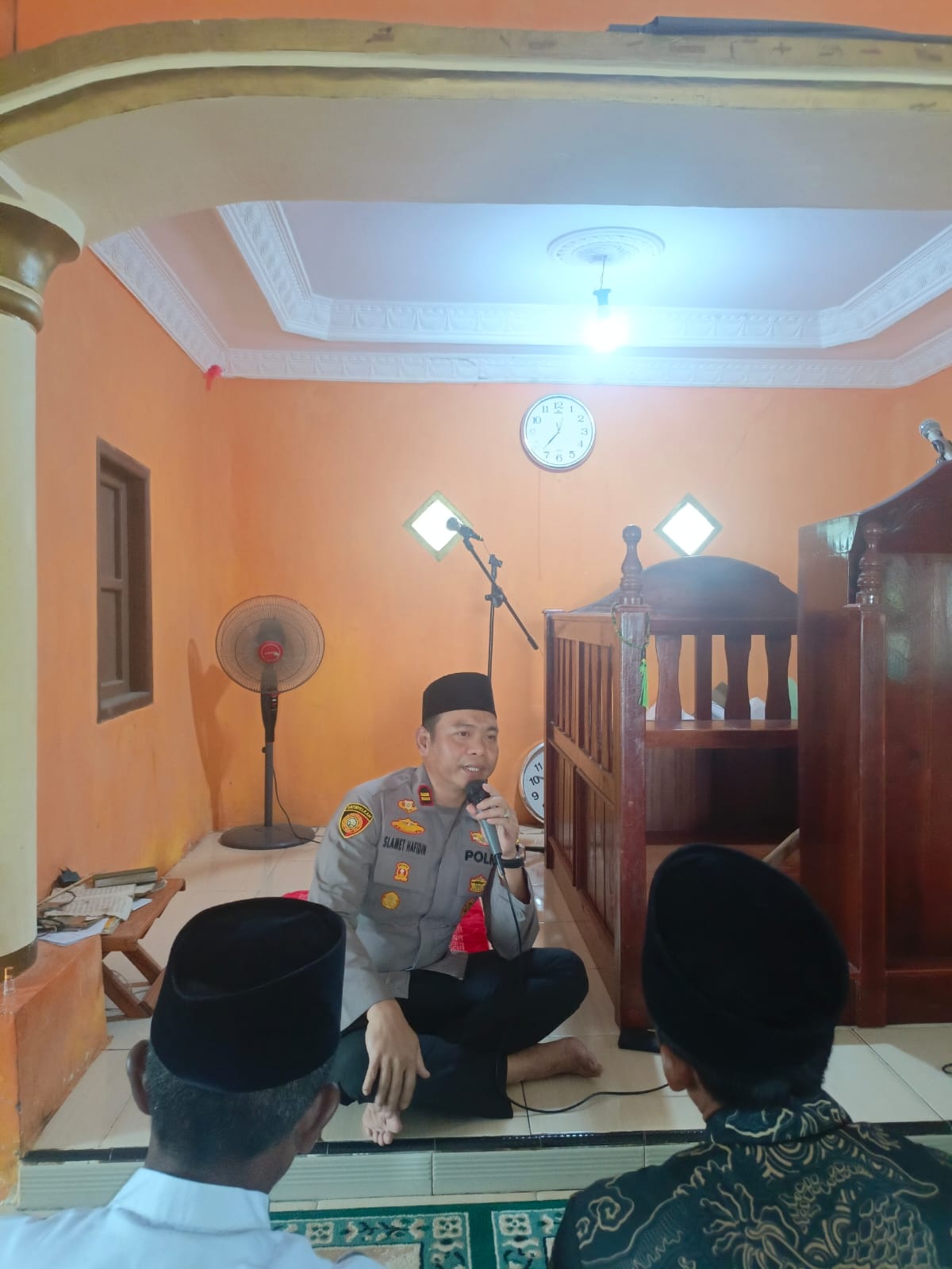 Usai pelaksanaan salat Jumat, IPTU Slamet Hafidin memberikan himbauan kamtibmas kepada sekitar 70 jamaah yang hadir. Dalam pesannya, ia mengingatkan masyarakat untuk menjauhi penyalahgunaan narkoba, menjaga kerukunan antarwarga, serta selalu berkoordinasi dengan pihak kepolisian apabila terjadi permasalahan di lingkungan desa.