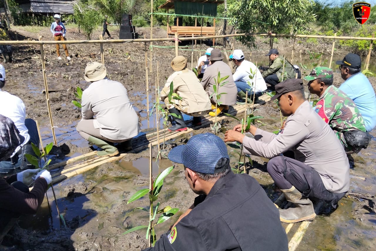 Kapolsek Matan Hilir Utara Hadiri Kegiatan Launching Penanaman 6.000 Bibit Mangrove di Kecamatan Matan Hilir Utara