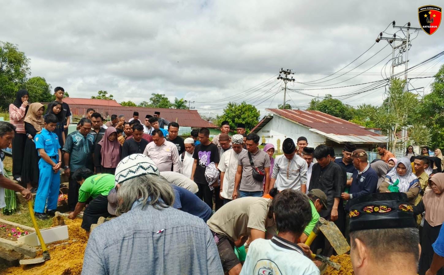 Selain memberikan ucapan duka, Kapolsek Mukok bersama anggota juga mengikuti prosesi pemakaman almarhumah yang digelar di Tempat Pemakaman Umum (TPU) Tanjung Sekayam. Kehadiran aparat kepolisian tersebut menjadi bentuk nyata kepedulian institusi Polri terhadap anggotanya.