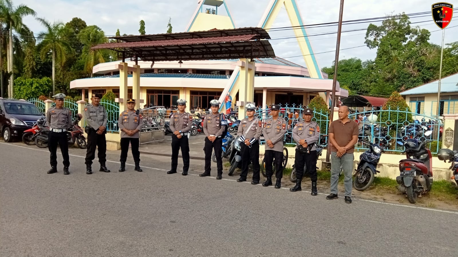 Sebanyak 22 personel gabungan dari Polres Sekadau dan Polsek Sekadau Hilir dikerahkan untuk mengamankan jalannya Misa Kenaikan Isa Almasih di Gereja Paroki Santo Petrus dan Paulus, Jalan Merdeka Selatan, Kecamatan Sekadau Hilir, Kamis (29/5/2025).