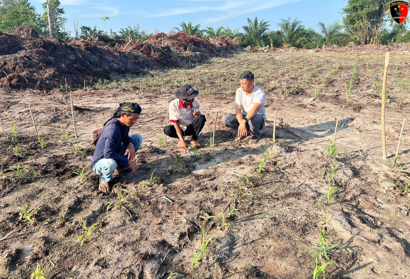 Kapolsek menyampaikan pentingnya pemantauan secara berkala terhadap lahan demplot yang telah ditanami.