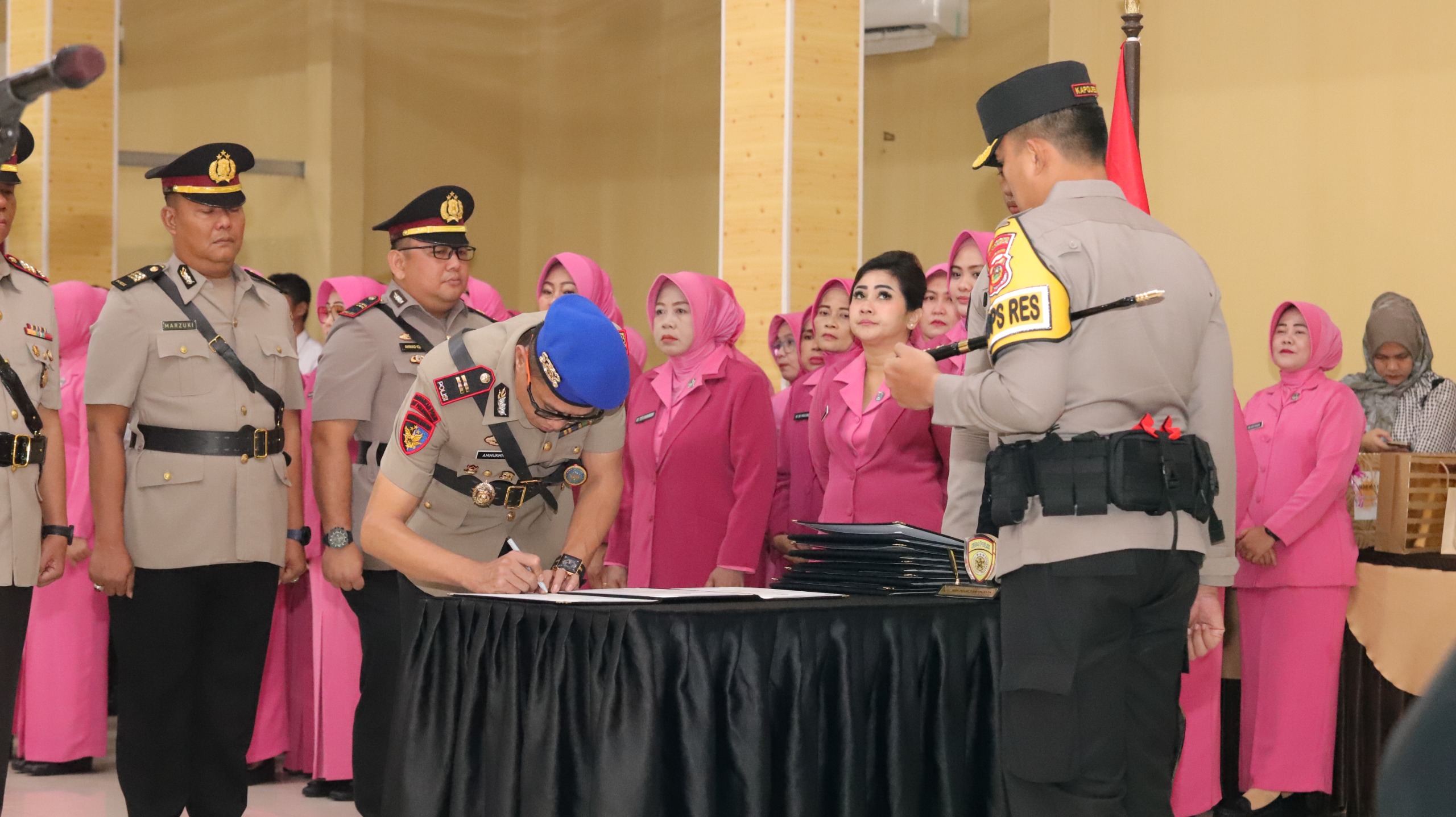 POLRES BANYUASIN– Kapolres Banyuasin AKBP Ruri Prastowo SH SIK MIK memimpin langsung prosesi serah terima jabatan (sertijab) dan kegiatan kenal pamit sejumlah pejabat utama (PJU) Polres Banyuasin. Acara berlangsung khidmat dan penuh rasa kekeluargaan di Gedung Sanika Satyawada Polres Banyuasin, Jum’at (31/1) pukul 08.30 WIB.
