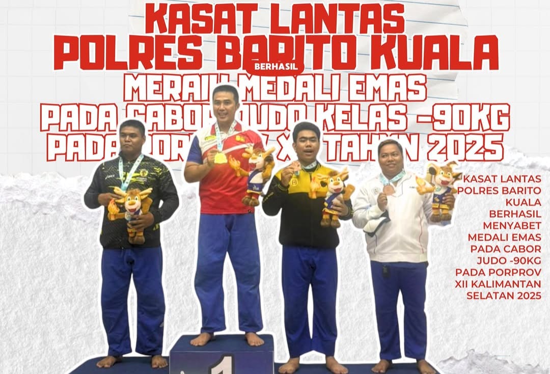 Kepolisian Resor Barito Kuala kembali menorehkan prestasi membanggakan. AKP Rahmat Endro Suprapto S.E., M.I.Kom.,Kepala Satuan Lalu Lintas (Kasat Lantas) Polres Barito Kuala berhasil meraih medali emas pada ajang Pekan Olahraga Provinsi (Porprov) XII Kalimantan Selatan Tahun 2025 dalam Cabang Olahraga Judo, kelas -90 kilogram.