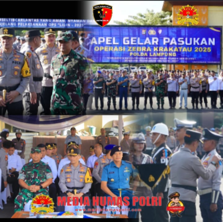 Kasdam XXI/Radin Inten Brigjen TNI Andrian Susanto, S.I.P., M.Han., M.I.Pol., menghadiri Apel Gelar Pasukan Operasi Zebra Krakatau 2025 yang berlangsung di Lapangan Apel Polda Lampung, Jalan Terusan Ryacudu, Way Huwi, Jati Agung, Lampung Selatan, Senin (17/11/2025). Tahun ini kegiatan mengusung tema “Terwujudnya Kamseltibcar Lantas yang Aman, Nyaman, dan Selamat Menjelang Pelaksanaan Ops Lilin 2025”.