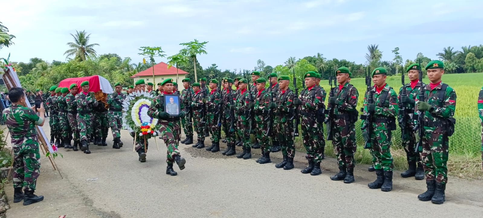 “Kegiatan upacara pemakaman dan apel persada ini merupakan bentuk penghargaan dari satuan kepada almarhum atas darma bakti selama pengabdian dalam dinas militer,” ujar Mayor Inf M. Alif Suroso dalam sambutannya.(Irfani).