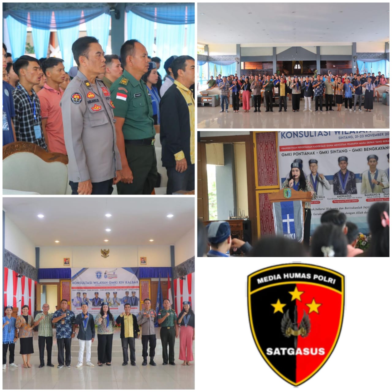 Kasi Humas Polres Sintang Iptu Nikadelis Dekok menghadiri pembukaan Kegiatan Konsultasi Wilayah Gerakan Mahasiswa Kristen Indonesia Wilayah XIV yang bertempat di Aula Pendopo Bupati Sintang. Kamis, ( 21/11/24 ) Sore.
