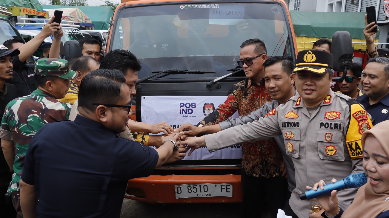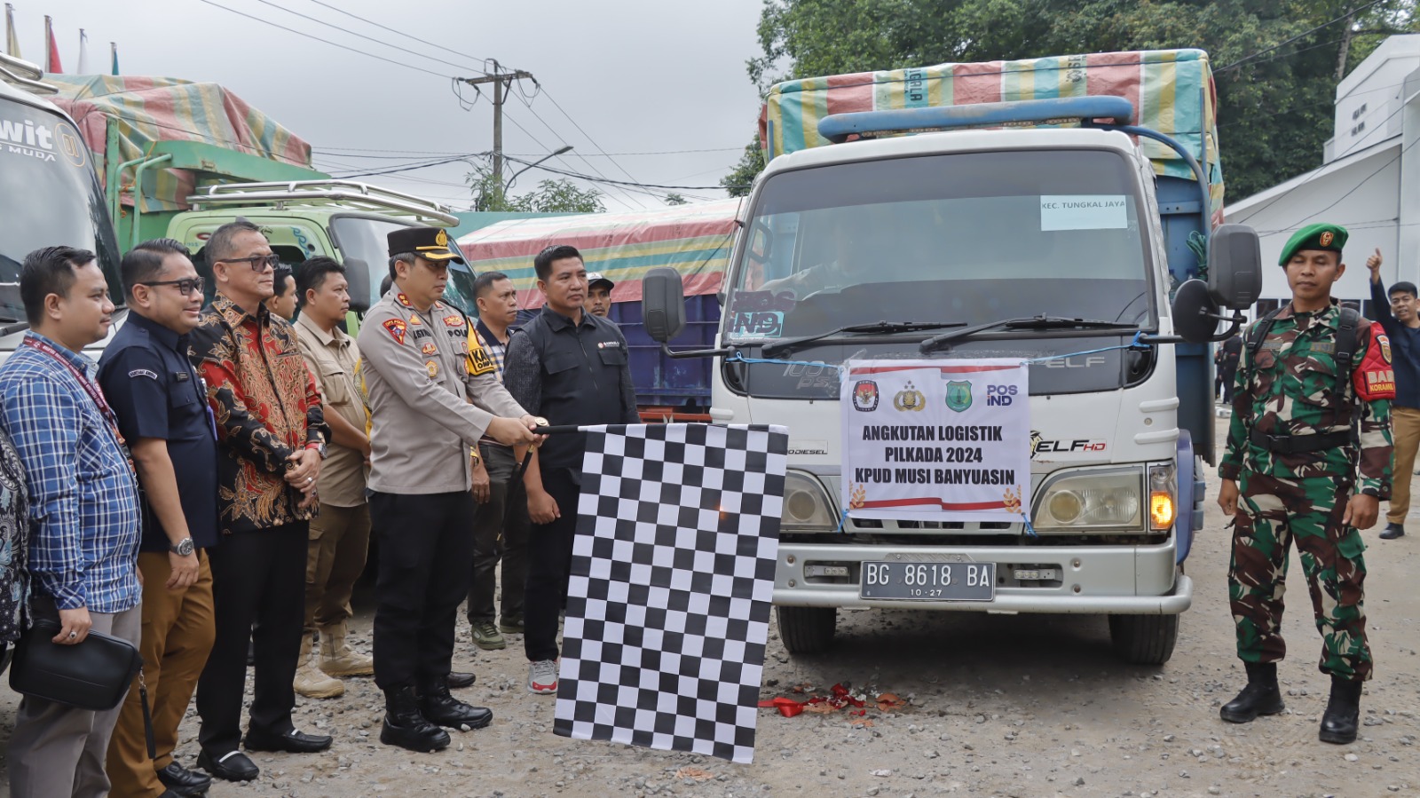 Pendistribusian secara simbolis dilakukan Ketua KPU Prop Sumsel diwakili sekretaris KPU Sumsel Eko Iswantoro, Pj bupati Muba diwakili oleh staf ahli bidang keuangan sekretariat daerah muba Bpk. Suganda, Kapolres Musi Banyuasin AKBP LISTIYONO DWI NUGROHO, S.I.K.,M.H, Kasdim 0401 Musi Banyuasin Mayor Inf Nur Sigit Prasetya, S.I.P, MSc, Ketua KPU Musi Banyuasin M. Sigid Nugroho, S.Pd, SH, Bawaslu Kab Muba Beri Pirmansa, SH, Kesbangpol Kab. Muba Kabid Poldagri Badan Kesbangpol Musi Banyuasin Julityunus, SIP, Kasat Pol PP, Dishub Kab. Muba.