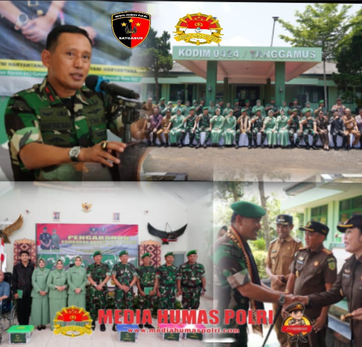 Komandan Korem 043/Garuda Hitam Brigjen TNI Haryantana, S.H., didampingi Ketua Persit KCK Koorcab Rem 043 PD XXI/RI Ny. Iryani Haryantana, bersama Kasi Intel, Kasipers, dan Kasiter Kasrem 043/Gatam, melaksanakan kunjungan kerja ke Kodim 0424/Tanggamus, Selasa (23/9/2025).