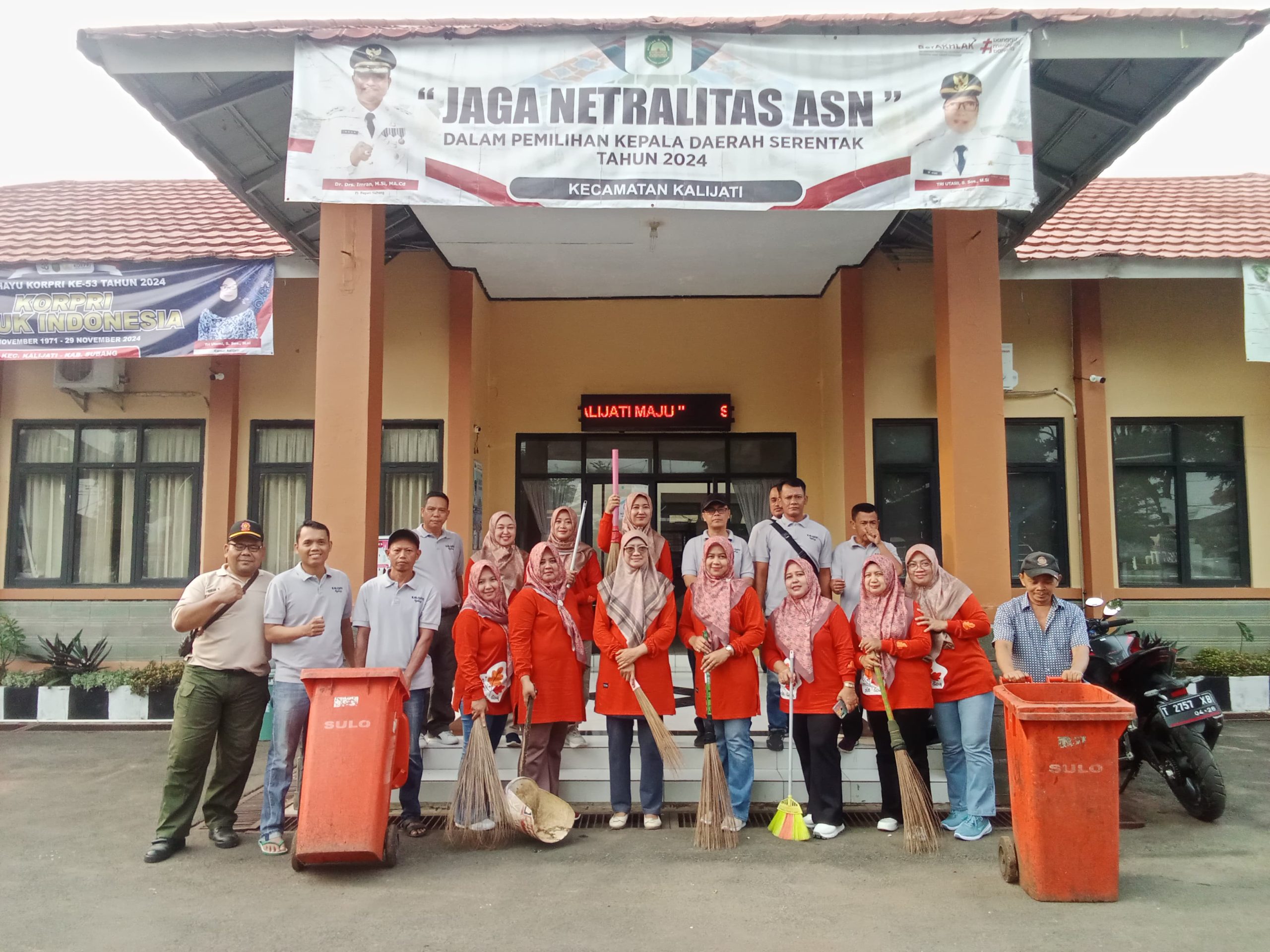 Dalam rangka menjaga kebersihan yang ada di lingkungan, Camat Kecamatan Kalijati melaksanakan kegiatan Jumat bersih, (Jumsih ) Kegiatan tersebut bertempat di halaman lingkungan Kantor Kecamatan Kalijati-.Jumat (29/11/2024).;pukul 08.00.WIB.