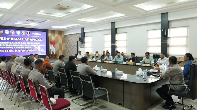 Polres Karawang menggelar Kegiatan Verifikasi Lapangan Pemantauan dan Evaluasi Kinerja Penyelenggaraan Pelayanan Publik (PEKPPP) Tahun 2025, pada Jumat (19/09/2025) bertempat di Aula Lantai 2 Polres Karawang. Kegiatan ini berlangsung mulai pukul 08.30 WIB hingga 10.00 WIB dengan dihadiri langsung oleh jajaran pejabat utama Polres Karawang dan Tim Penilai Internal Mabes Polri.