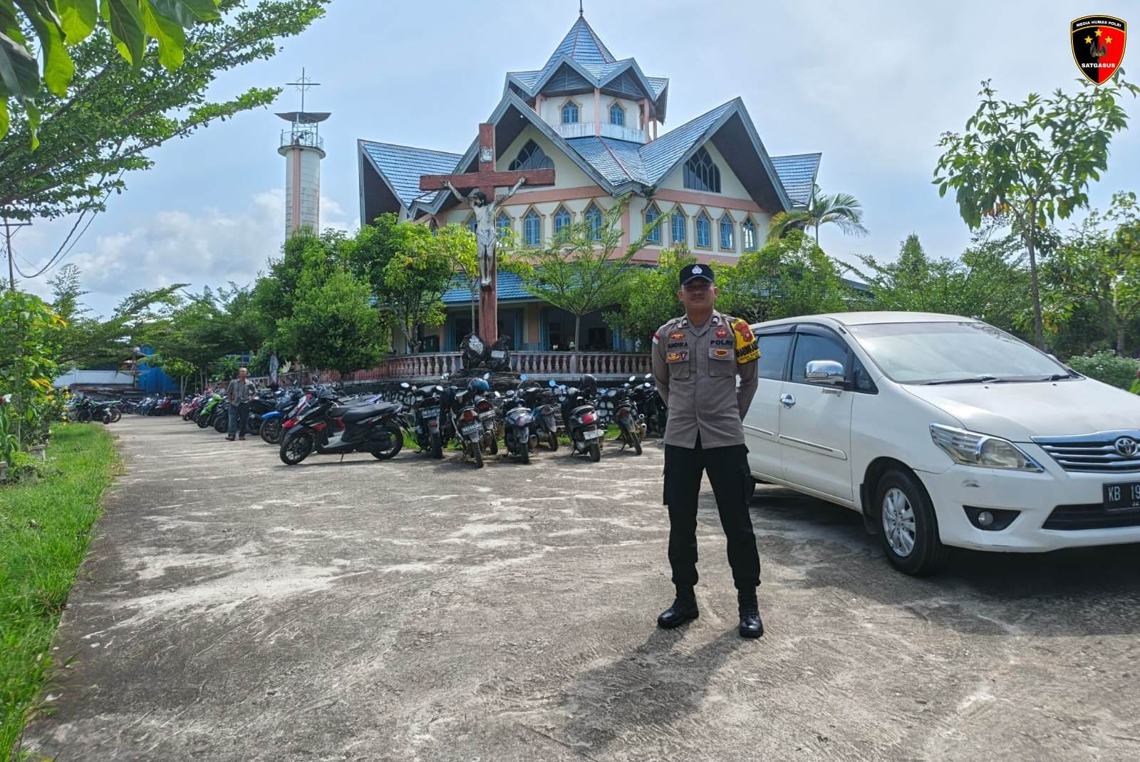 Sementara itu, di Gereja Katolik Paroki Salib Suci Beduai, Pastor Agustinus Kraeng, CP memimpin Misa Minggu yang dihadiri sekitar 200 umat. Jemaat tampak mengikuti rangkaian misa dengan tertib dan penuh penghayatan. Selama pelaksanaan, personel Polsek Beduai turut mengatur arus keluar-masuk kendaraan dan memastikan keamanan lingkungan sekitar gereja tetap kondusif.