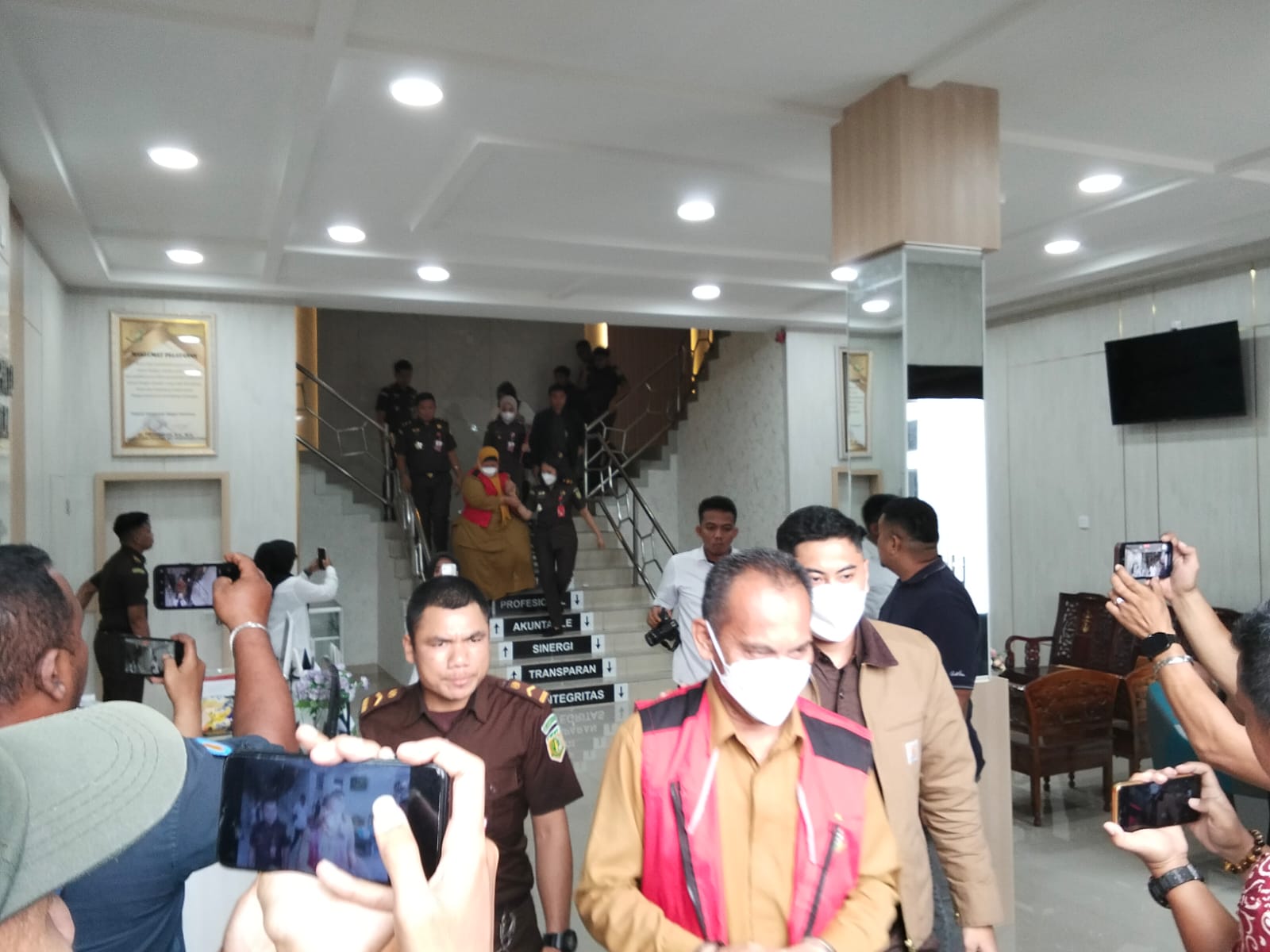 Usai menggelar konferensi pers pada Senin (9/12/2024) siang, tampak kemudian sekira pukul 16.40 WIB dimana Kadis LH inisial RA dan mantan Kadis LH inisial S memakai rompi orange berjalan dan dikawal ketat pegawai Kejari Karimun keluar dari ruangan menuju mobil tahanan dan diantar ke Rutan kelas II B Tanjung Balai Karimun.