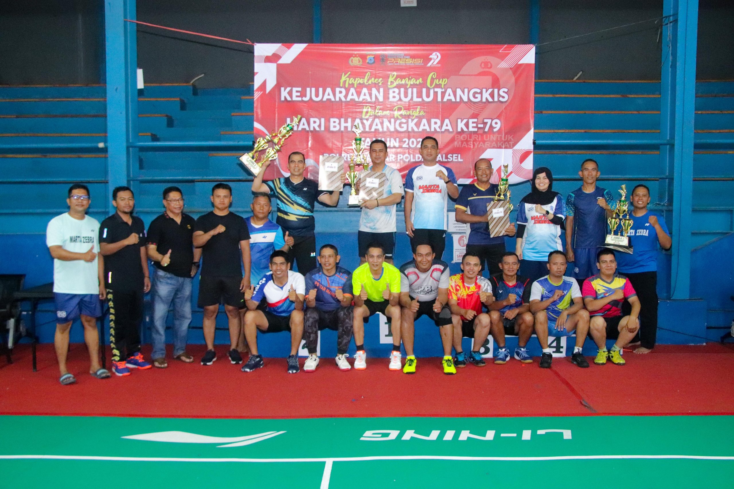 Dalam rangka memeriahkan Hari Bhayangkara ke-79 Tahun 2025, Polres Banjar Polda Kalsel menggelar Kejuaraan Pertandingan Badminton yang berlangsung penuh semangat dan sportivitas. Kegiatan ini dipimpin langsung oleh Kapolres Banjar AKBP Dr. Fadli dan dilaksanakan di Gedung Berkat Abadi, Sungai Sipai, Martapura, pada Selasa (24/6/2025).