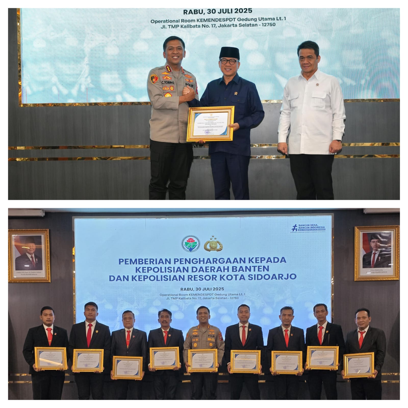 Apresiasi tersebut disampaikan Menteri Desa dan Pembangunan Daerah Tertinggal (Mendes PDT) Yandri Susanto didampingi Wakil Mendes PDT Ahmad Riza Patria, berupa pemberian penghargaan terkait Program Polisi Peduli Pengangguran (Poliran) ke Kapolda Banten Irjen. Pol. Suyudi Ario Seto beserta jajarannya. Serta penghargaan yang diberikan kepada Polresta Sidoarjo yang berhasil mengungkap kasus dugaan korupsi suap proses seleksi perangkat desa di wilayah Kabupaten Sidoarjo tahun 2025.