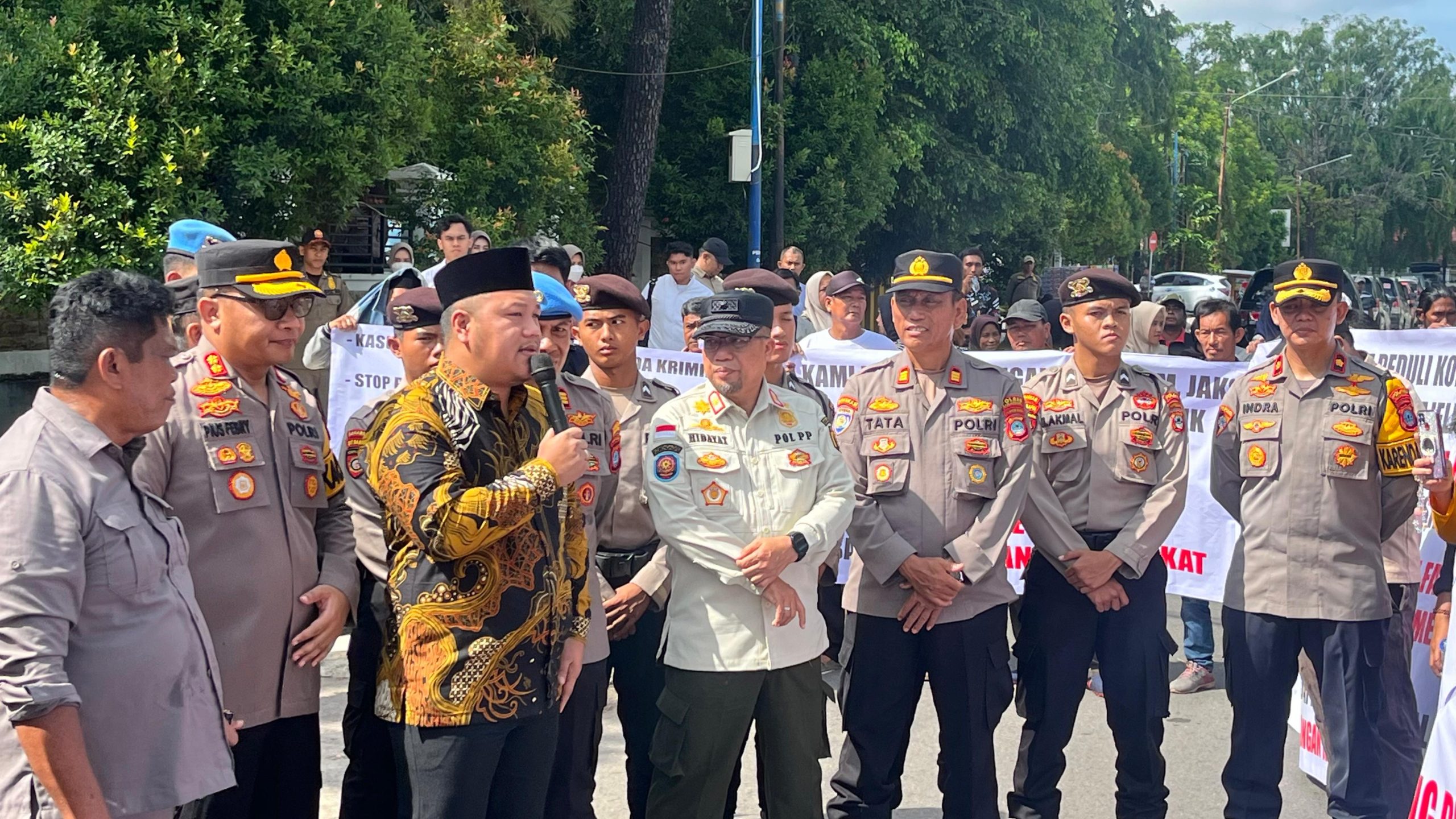 “Kami dari kepolisian hanya mengamankan kegiatan yang dilakukan masyarakat, termasuk aksi hari ini. Proses hukumnya sendiri sudah berjalan di pengadilan, dan mari kita menunggu hasil putusannya,” ujarnya.