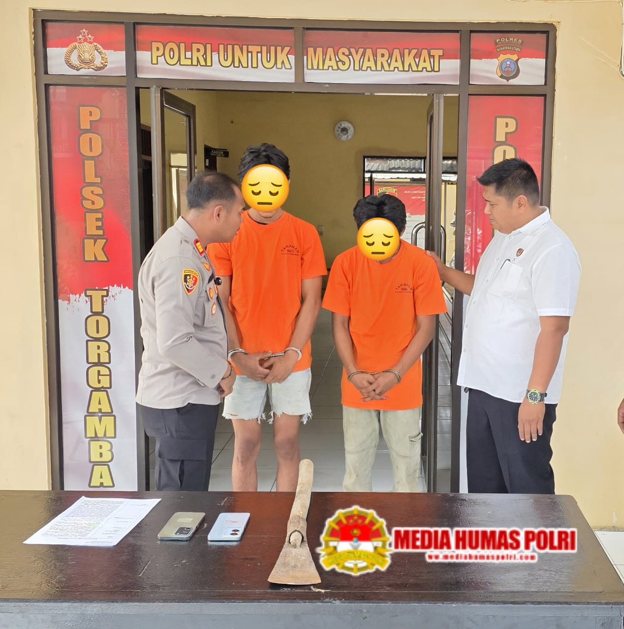 Kapolres Labuhanbatu Selatan AKBP Aditya S.P. Sembiring M, S.I.K., melalui Kapolsek Torgamba AKP Syamsul Adhar, S.H., M.H., didampingi Kanit Reskrim IPDA Bambang Purwanto, membenarkan penangkapan dua tersangka dalam kasus tersebut.