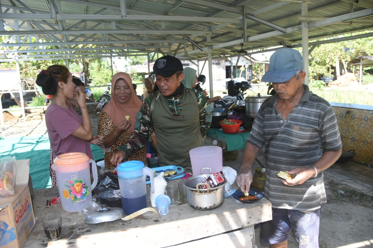 Pemandangan pada Minggu (18/5) ini memperlihatkan kebersamaan antara warga sipil dan personel TNI dalam mendukung kelancaran program TMMD. Para ibu dengan gotong royong menyiapkan berbagai hidangan untuk menyuplai energi para anggota Satgas yang telah bekerja keras.