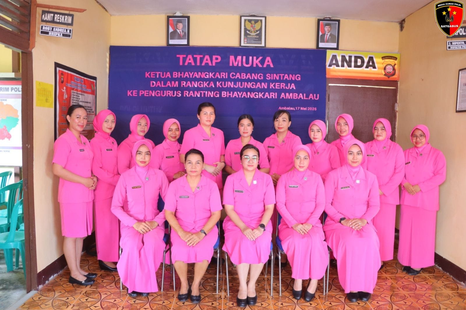 Ketua Bhayangkari Cabang Sintang, Ny. Nina Nyoman Budi, melakukan kunjungan kerja ke Polsek Ambalau, Kecamatan Ambalau, Kabupaten Sintang, pada Sabtu (17/5). Kegiatan yang berlangsung sejak Sabtu siang ini digelar di Mapolsek Ambalau dan dihadiri oleh sejumlah pejabat serta anggota Bhayangkari dan Kepolisian.