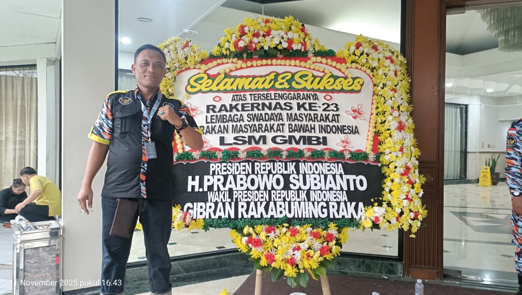 Ketua Distrik Lembaga Swadaya Masyarakat Gerakan Masyarakat Bawah Indonesia (LSM GMBI) Kabupaten Lampung Timur, . Fikri, dan sekretaris taoufan jaya negara turut menghadiri Rapat Kerja Nasional (Rakernas) ke-23 LSM GMBI yang berlangsung di Hotel Grand Pasundan, Kota Bandung, Jawa Barat, pada 10 s_d 12 November 2025.