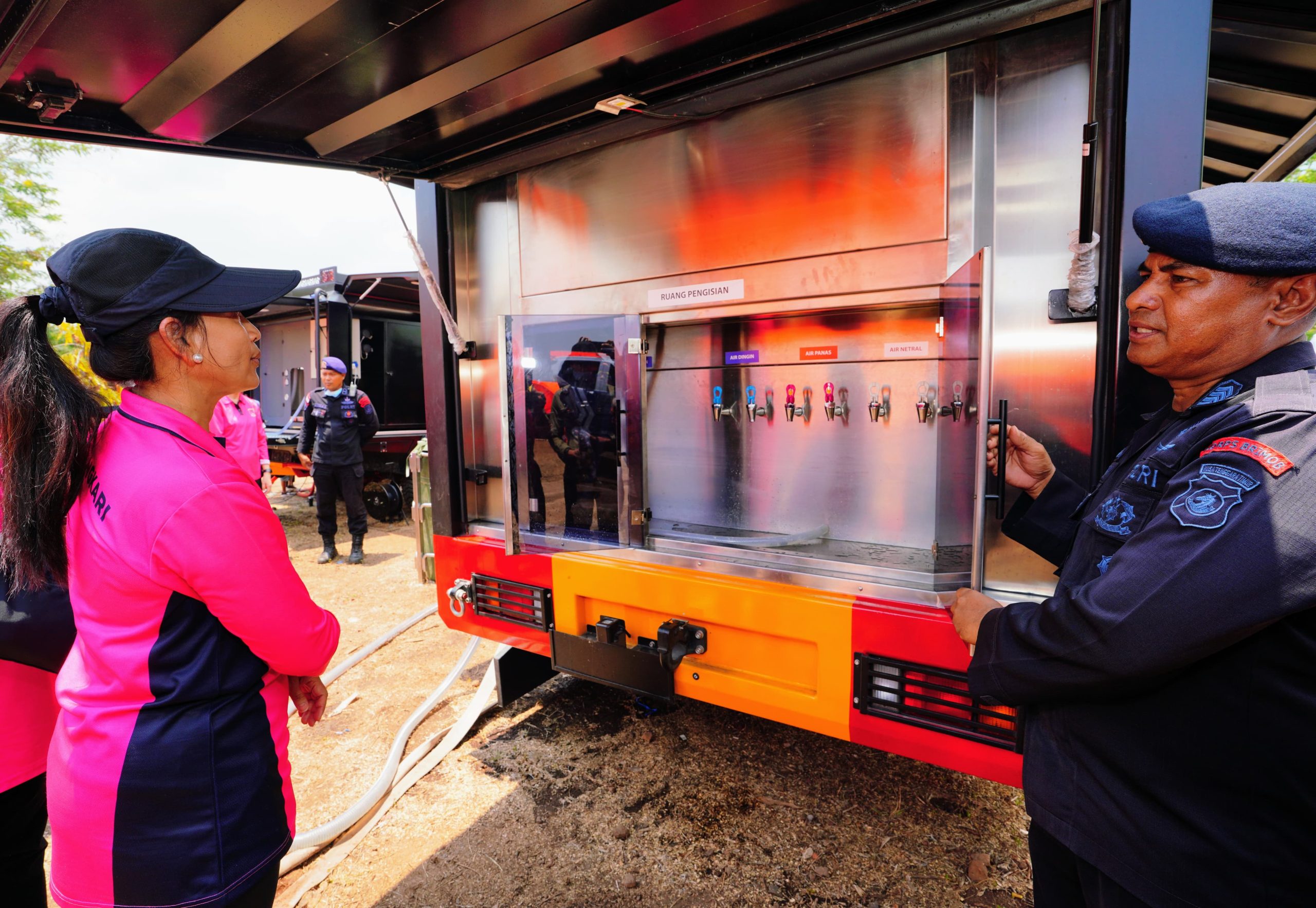 Kendaraan water treatment yang dioperasikan oleh Brimob Polda NTT terus memasok air bersih ke posko-posko pengungsian untuk memastikan ketersediaan air minum yang layak bagi para pengungsi. Kehadiran Ketua Umum Bhayangkari dan para pejabat Polri ini diharapkan dapat memberikan semangat dan kepercayaan diri kepada para pengungsi bahwa mereka tidak sendirian dalam menghadapi masa-masa sulit akibat erupsi Gunung Lewotobi. (Aidi gunaidi)