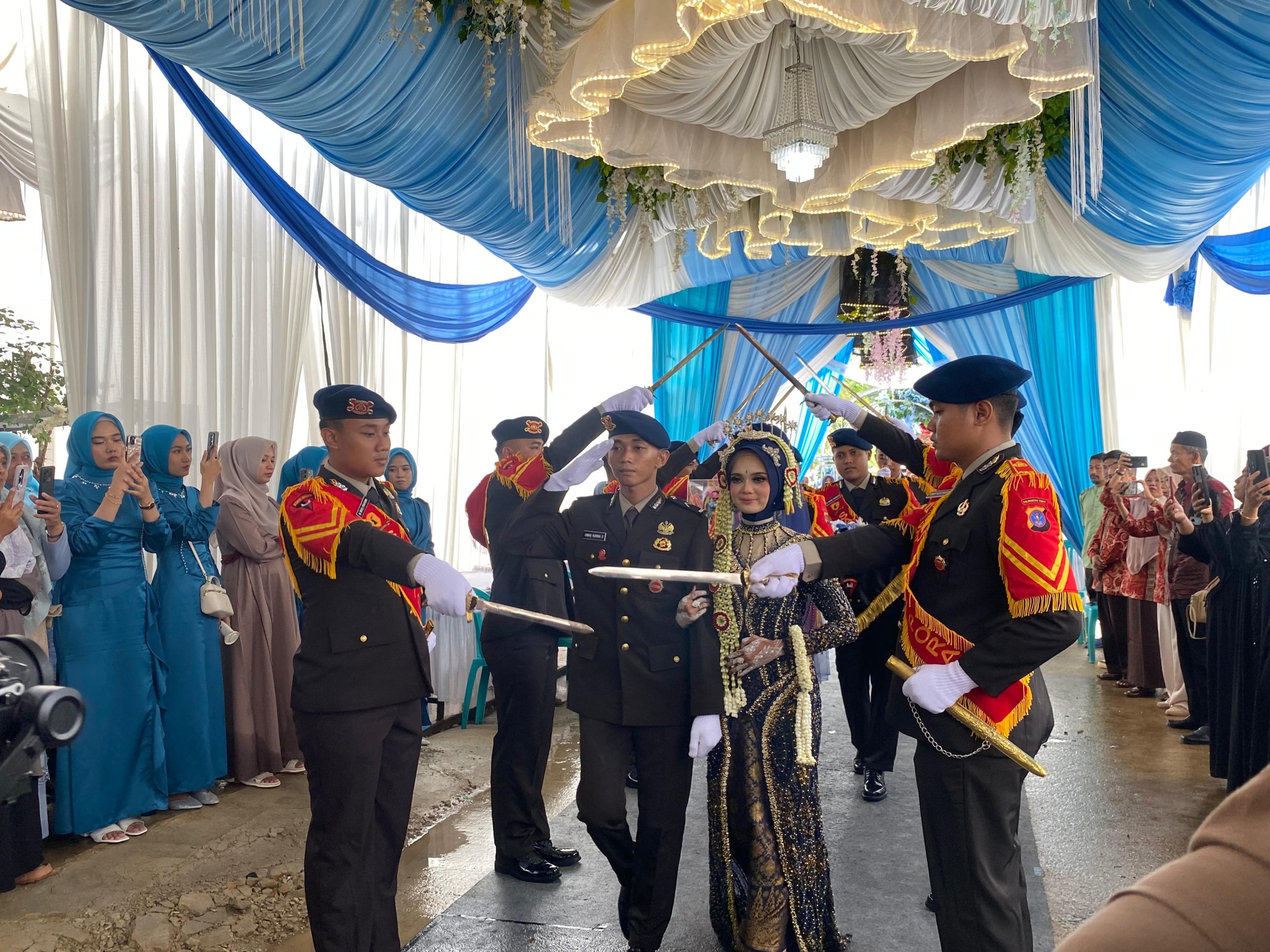 Tradisi unik dan sakral Korps Brimob, Khadgapadma Pora atau dikenal dengan sebutan Teratai Pora, mewarnai resepsi pernikahan salah satu personel Batalyon B Pelopor, Bripda Dimas Kurnia Suryanata. Acara ini digelar dengan khidmat di Kelurahan Rawa Makmur, Kecamatan Palaran, Kota Samarinda, pada hari Minggu (30/11/2025). Tradisi ini melambangkan penghormatan dan pengantar bagi Bripda Dimas memasuki lembaran hidup baru sebagai Bhayangkara Sejati yang berumah tangga.