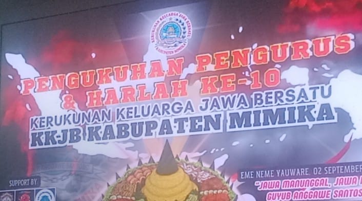 Kerukunan Keluarga Jawa Bersatu (KKJB) Timika merayakan Hari Ulang Tahun (HUT) ke-10 sekaligus melantik pengurus periode 2025–2028 di Graha Emeneme Yauware, Selasa (2/9/2025).
