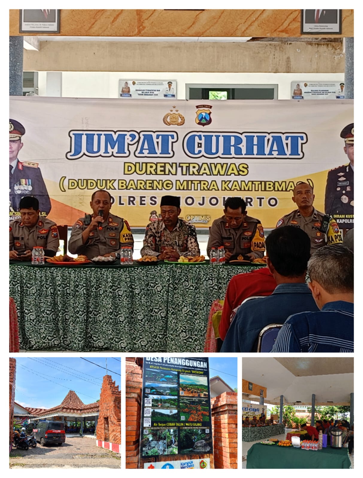 Polres Mojokerto menggelar kegiatan rutin mingguan “Jum’at Curhat” di Pendopo Balai Desa Penanggungan Kec.Trawas Kab. Mojokerto Jumat (15/11/24).Jumat curhat merupakan salah satu inovasi kepolisian untuk mewujudkan sinergitas antara kepolisian dengan masyarakat untuk menjaga Harkamtibmas.