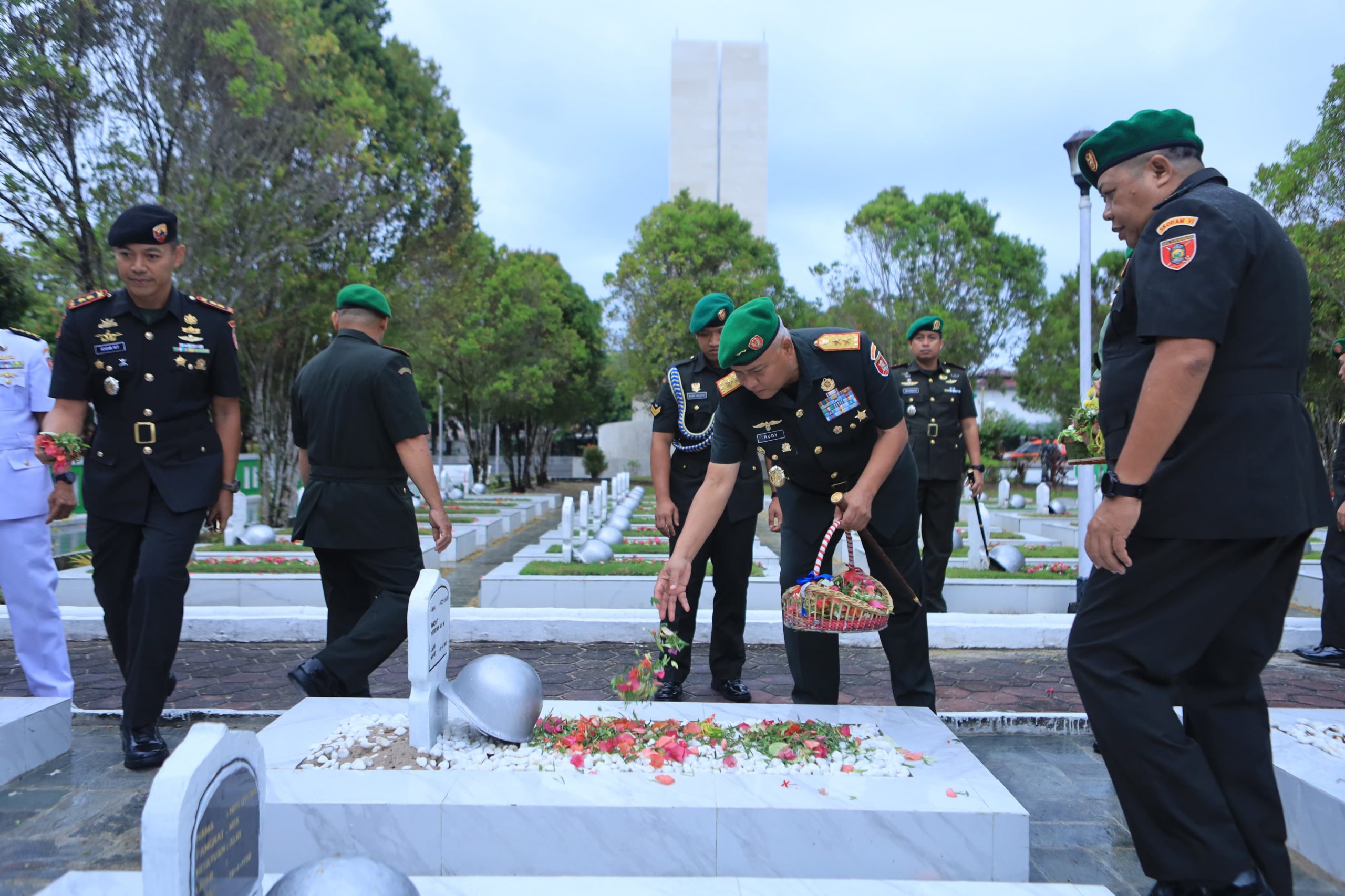 Dalam rangka memperingati Hari Ulang Tahun ke-67 Kodam VI/Mulawarman Tahun 2025, Panglima Kodam VI/Mulawarman Mayjen TNI Rudy Rachmat Nugraha, S.I.P., M.Sc. memimpin langsung pelaksanaan ziarah rombongan di Taman Makam Pahlawan (TMP) Dharma Agung, Balikpapan, pada Senin, 7 Juli 2025.