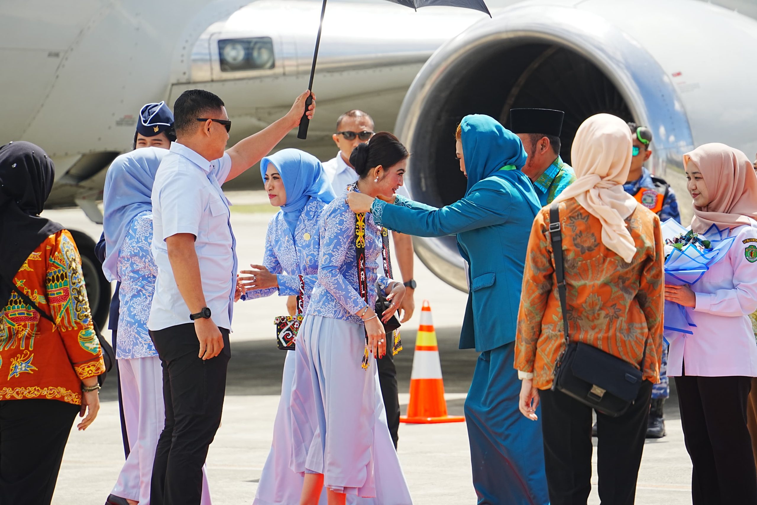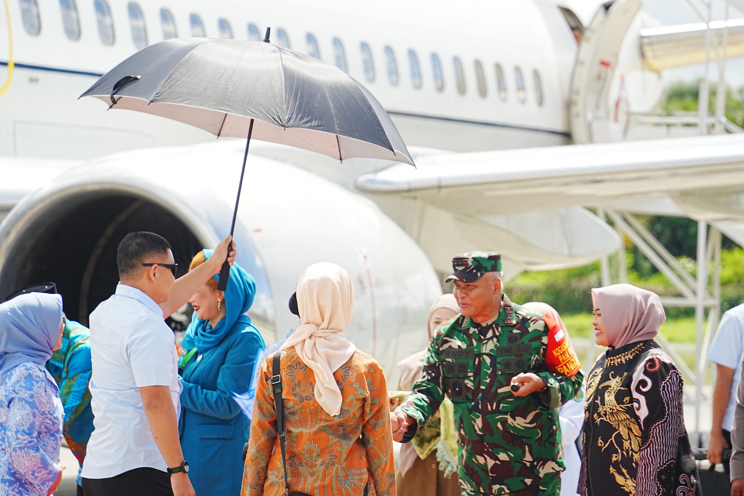 Rombongan yang datang menggunakan pesawat kepresidenan ini disambut secara resmi oleh sejumlah pejabat daerah dan unsur TNI-Polri, termasuk Pangdam VI/Mulawarman Mayjen TNI Rudy Rachmat Nugraha, S.I.P., M.Sc., beserta Ibu.