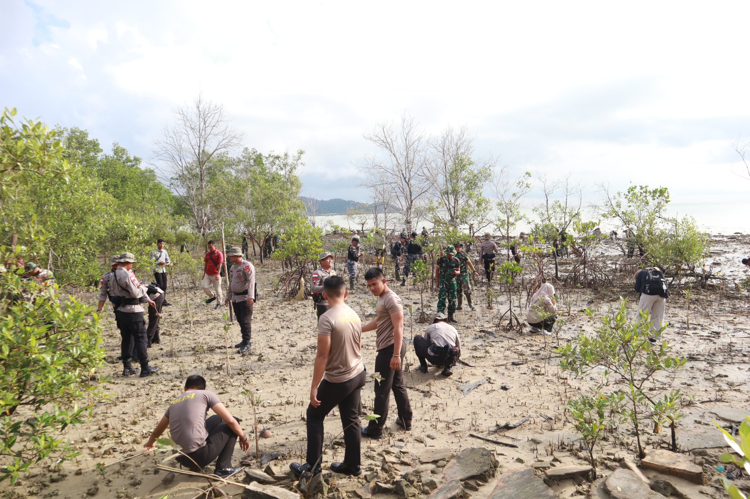 Kegiatan penanaman mangrove ini dipimpin oleh Pasiter Kodim 0317/TBK, Letda Inf Hariyono, yang mewakili Dandim 0317/TBK. Selain itu, kegiatan ini juga melibatkan sejumlah instansi dan komunitas, di antaranya Lanal TBK, Polres Karimun, Kompi 2 Pelopor A Brimob, Organisasi Kepemudaan FKPPI, mahasiswa, pelajar SMA, serta masyarakat setempat. Sebanyak 150 orang turut berpartisipasi dalam penanaman bibit mangrove yang diharapkan dapat mendukung penguatan ekosistem pesisir dan meningkatkan ketahanan alam terhadap dampak perubahan iklim.