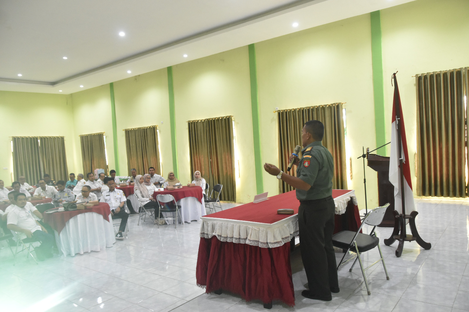 Kegiatan yang mengusung tema “Sinergitas TNI AD dengan Lembaga Kementerian dan Lembaga Pemerintahan Non Kementerian dalam Mensukseskan Program Asta Cita Pemerintah RI di Daerah” ini dihadiri langsung oleh Dandim 1002/HST Letkol Inf Ardiansyah Okta Putra Siregar, S.I.P, serta diikuti para Kepala Dinas/Badan jajaran Pemkab HST, para Camat, Kepala Balai Penyuluhan Pertanian (BPP) se-Kabupaten HST, para Danramil dan Perwira Staf Kodim 1002/HST.