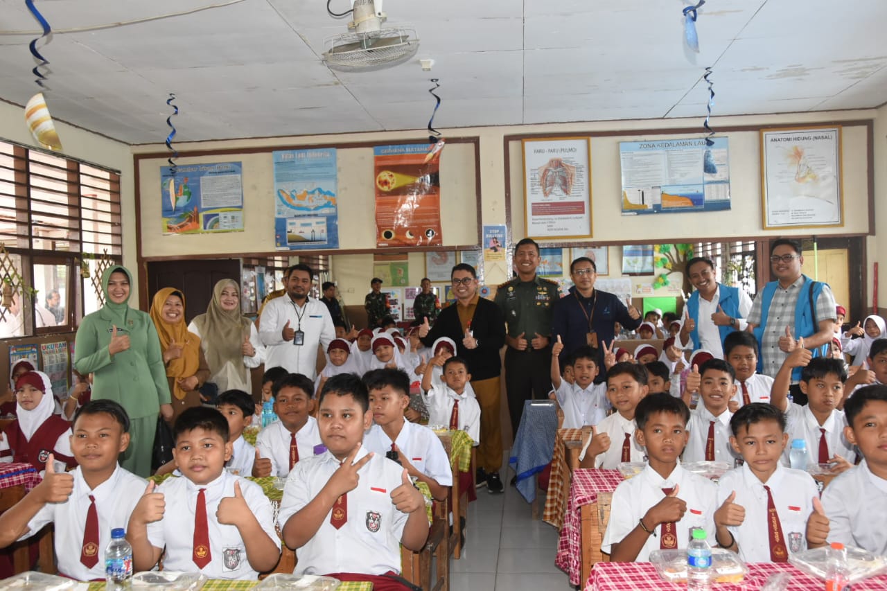 Bekerjasama dengan BPOM, Dinas Kesehatan, Dinas Pendidikan Kab.Hulu Sungai Tengah, Bulog Cabang Barabai dan Yayasan Agus Sasirangan, Kodim 1002/Hulu Sungai Tengah (HST) melakukan uji coba makan bergizi Gratis (MBG) di SDN 1 Barabai Barat dan SDN Banua Binjai. Senin (20/1/2025).
