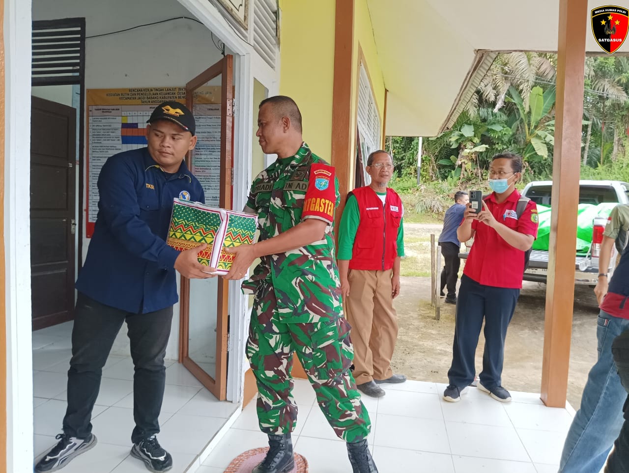 Anggota babinsa Koramil 07/Jagoi Babang,dipimpin Pjs.Danramil Jagoi Babang Lettu Inf.Sabar Manuel Sihombing,laksanakan kegiatan pendampingan penyaluran bantuan pasca banjir oleh Ketua PMI Kab.Bengkayang kepada warga binaan di Kantor Desa Semunying Jaya Dsn. Pareh Ds. Semunying Jaya Kec.Jagoi Babang Kab.Bengkayang.