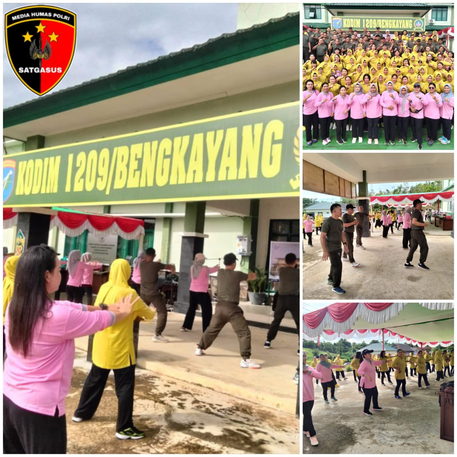 Prajurit Kodim 1209/Bky beserta Persit KCK Cabang LVI Kodim 1209/Bky menggelar senam bersama bertempat di lapangan Apel Makodim,Jl.Lumar Ledo,Ds.Magmagan Karya,Kec.lumar,Kab.Bengkayang Jumat ( 29/11/24 ).